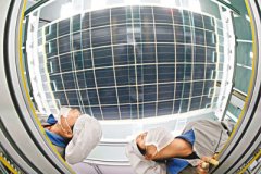 江蘇贛榆縣經濟開發區一家能源公司的工人在檢驗出口歐洲的太陽能光伏產品 因歐盟的“雙反”,中國光伏產業引發關注。2007年中國光伏元件產量躍居世界第一,且生產成本下降速度居于首位...