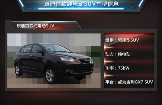 • 康迪電動車借吉利汽車平臺 將推首款純電動SUV 日期:2015-07-29 07:30:20 點擊:252 好評:0