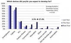 Strategy Analytics可穿戴設備生態系統(WDE)團隊從眾包視角對新興的可穿戴設備市場進行分析,分析指出,終端廠商以及應用和最終用戶的用例,推動可穿戴設備的銷量增長。 平板和可穿戴設備的總...