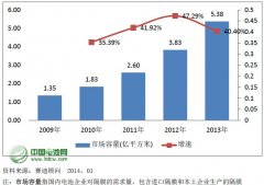 2013年,中國(guó)國(guó)內(nèi)鋰電隔膜的市場(chǎng)容量為5.38億平方米,同比增長(zhǎng)40.40%,市場(chǎng)規(guī)模達(dá)到50.32億元,同比增長(zhǎng)20.52%;2013年全球隔膜產(chǎn)量達(dá)到8.37億平方米,較2012年增長(zhǎng)27.98%。...