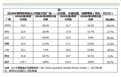 全年來看,中國智能手機市場實現同比8.7%的增長,遠高于2015年的1.6%。其中,OPPO、華為、vivo位列中國智能手機市場全年出貨量前三甲,占市場份額近半,這也是OPPO首次成為年度冠軍。...