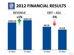 2月14日,通用汽車發布了其2012年財務數據,這也是自2009年重組以來第3年公開其財務報表。去年通用汽車營業收入同比增長1.3%至1,523億美元,營業利潤同比下跌4.8%至79億美元。 總體業績 2012年度...